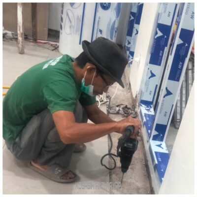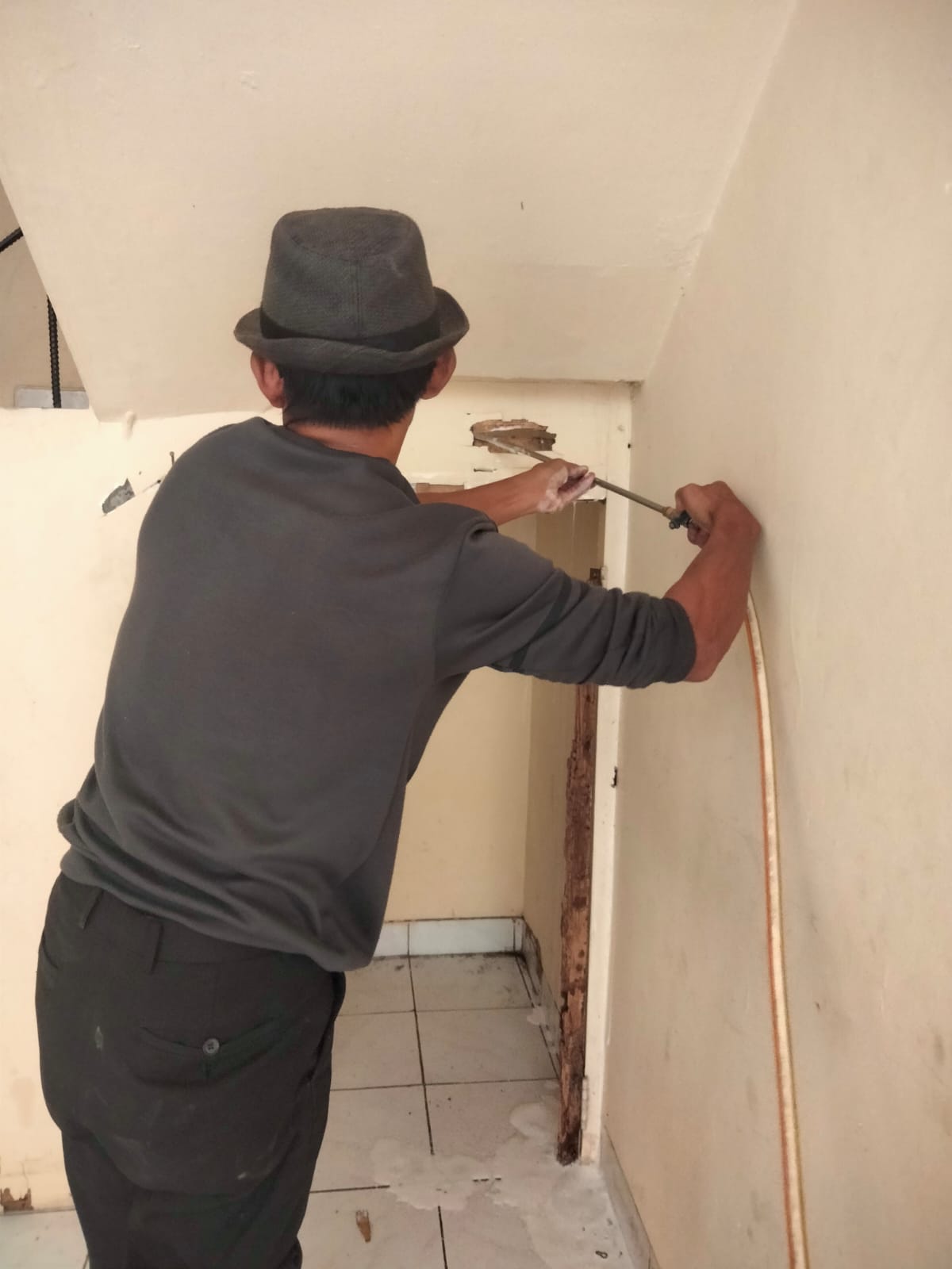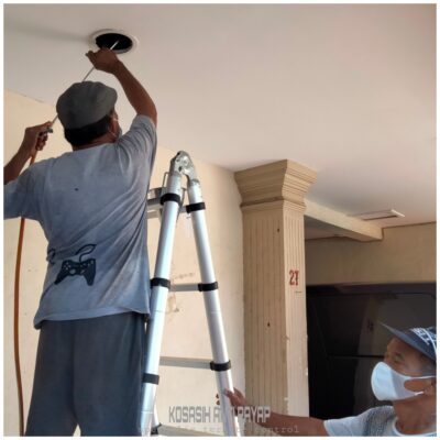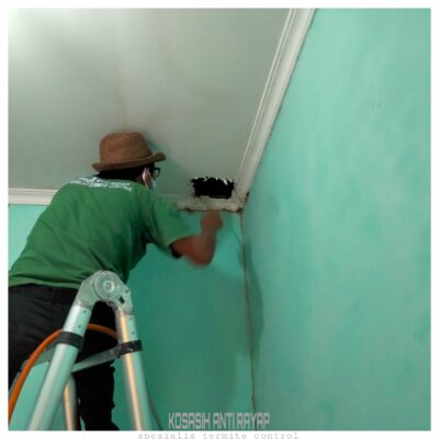 Penyemprotan dan penyuntikan larutan anti rayap, pada komponen kayu bangunan yang meliputi : Furniture, Almari, Vinyl, lantai kayu, Plafond Zipsum, kusen-kusen, Kuda-Kuda.